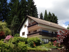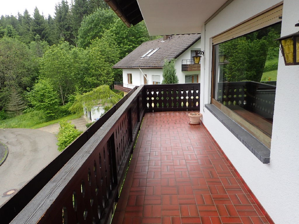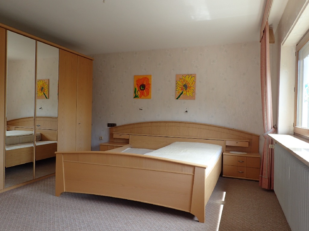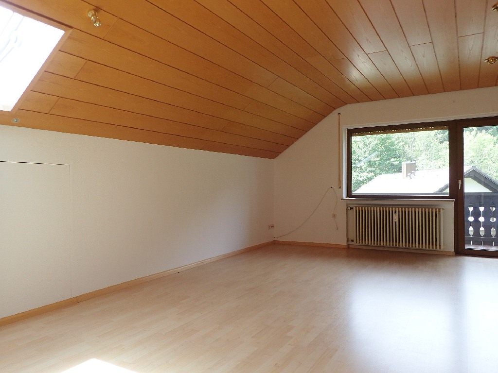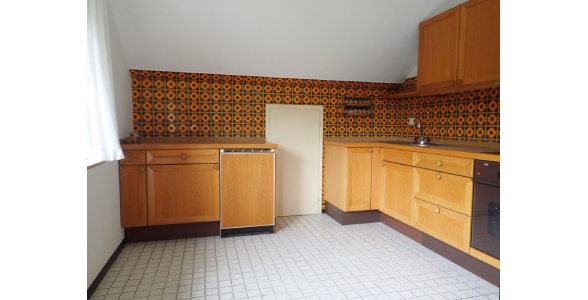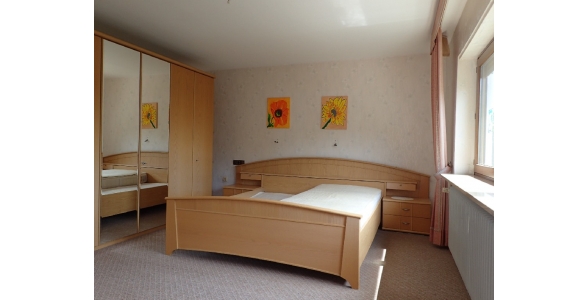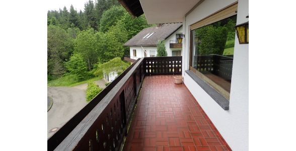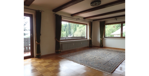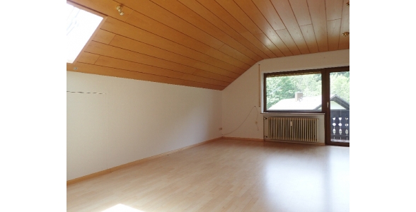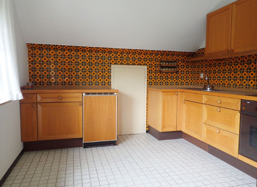 Die größte Wohnung mit ca. 115 m² liegt im Obergeschoss und hat 4 Zimmer, eine Küche, ein Wannenbad und ein separates WC. Drei Zimmer haben Zugang zum großen Südwestbalkon, der bei klarem Wetter einen herrlichen Alpenblick bietet. Aus der Küche gelangt man auf die große Terrasse und in den Garten..