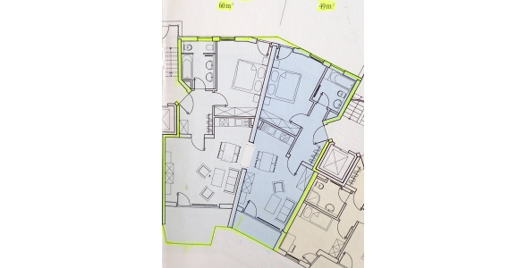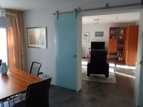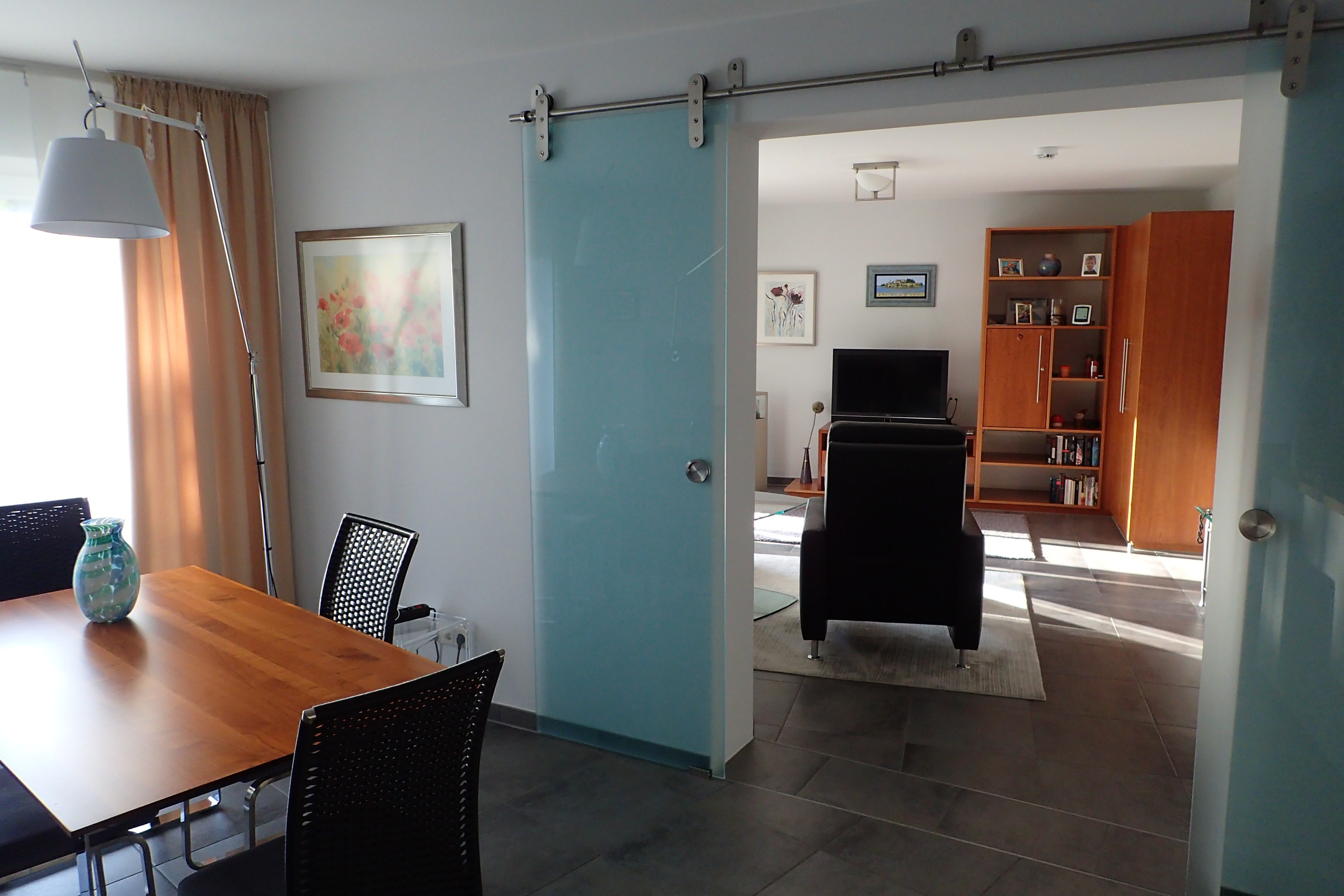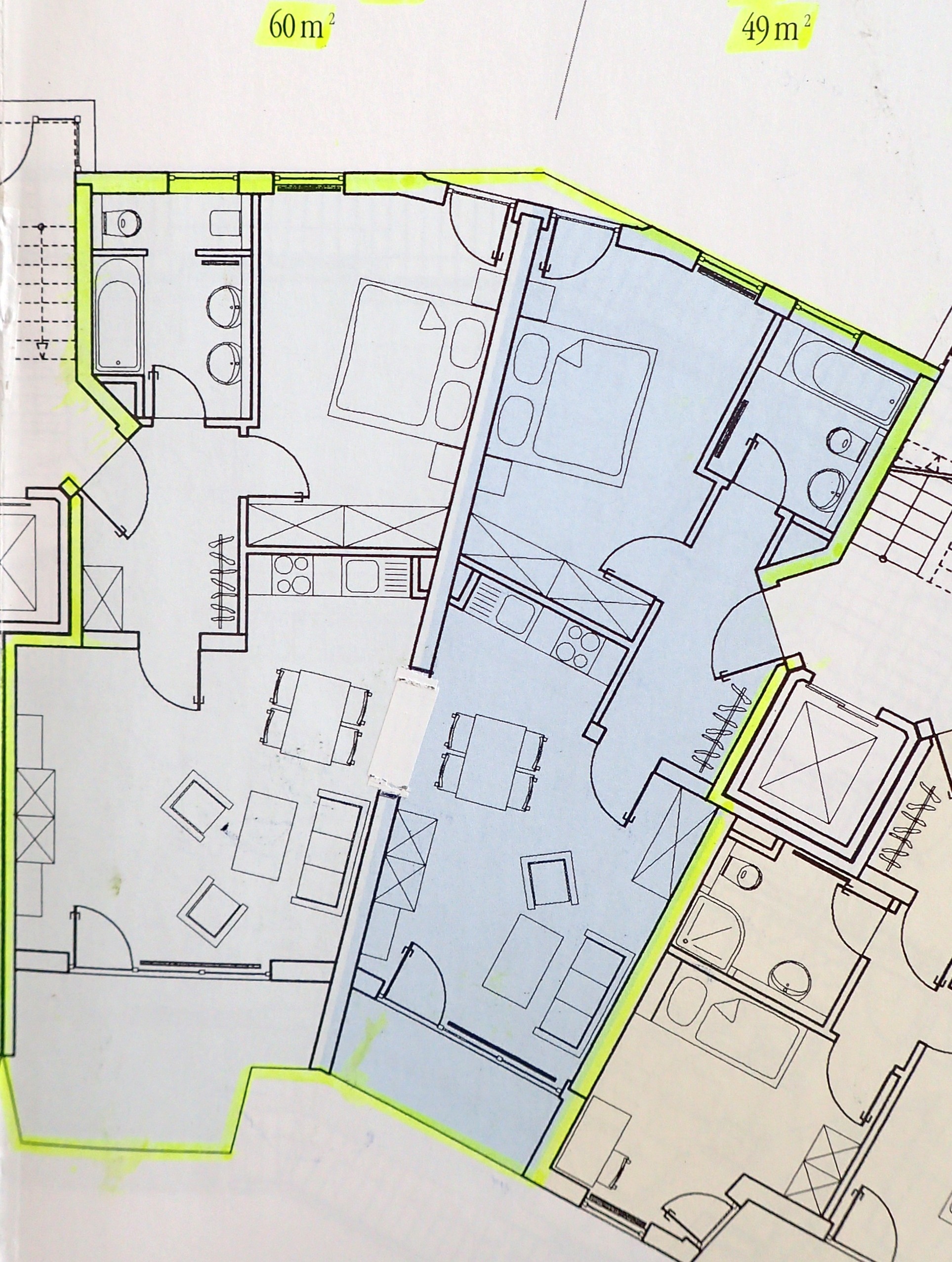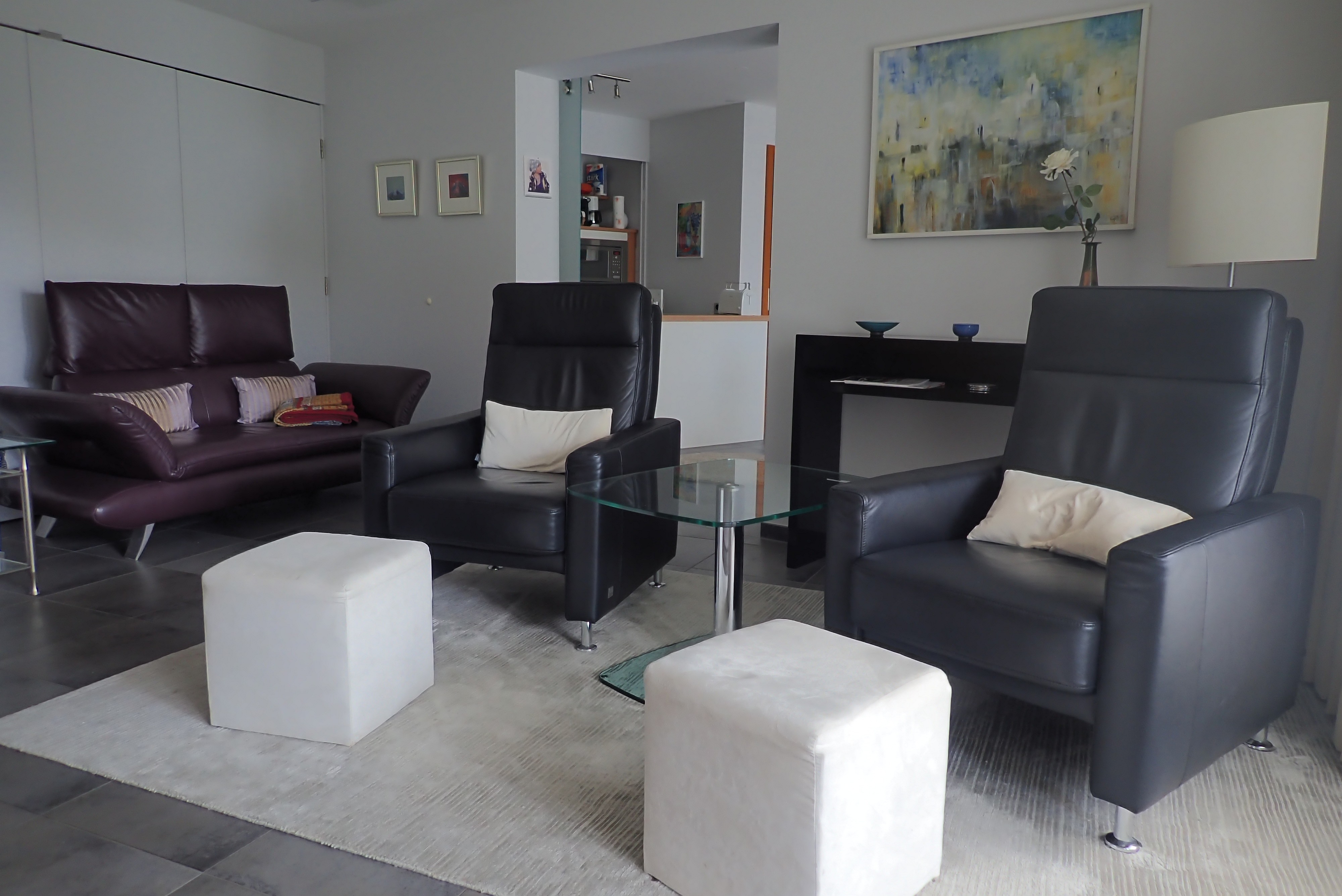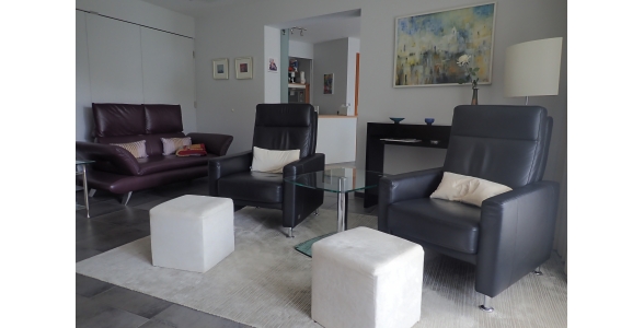 Die 4-Zimmer-Wohnung besteht aus zwei komplett eingerichteten 2-Zimmer-Ferienwohnungen (49 m² und 60 m² Wohnfläche), die harmonisch miteinander durch eine große Glasschiebetür zwischen den Wohnräumen verbunden sind. Die beiden zusammengelegten Wohnungen befinden sich in der 1 Etage (Aufzug vorhanden!) und haben zwei Südwest-Balkone mit schönem Blick in den Adlerpark. Durch die Zusammenlegung der zwei Wohnungen gibt es zwei Wohnräume, zwei Schlafzimmer, zwei Bäder und zwei Küchen (eine Küchenzeile kann mit einer dreiteiligen Trennwand verschlossen werden). Die 109 m² große Wohnung ist dadurch sehr individuell mit der Familie oder Freunden nutzbar. Jede Wohnung verfügt über hochwertige Einbauschränke im Wohn- und im Schlafzimmer. Die Wohnung wird mit sämtlichen Mobiliar und Inventar verkauft.