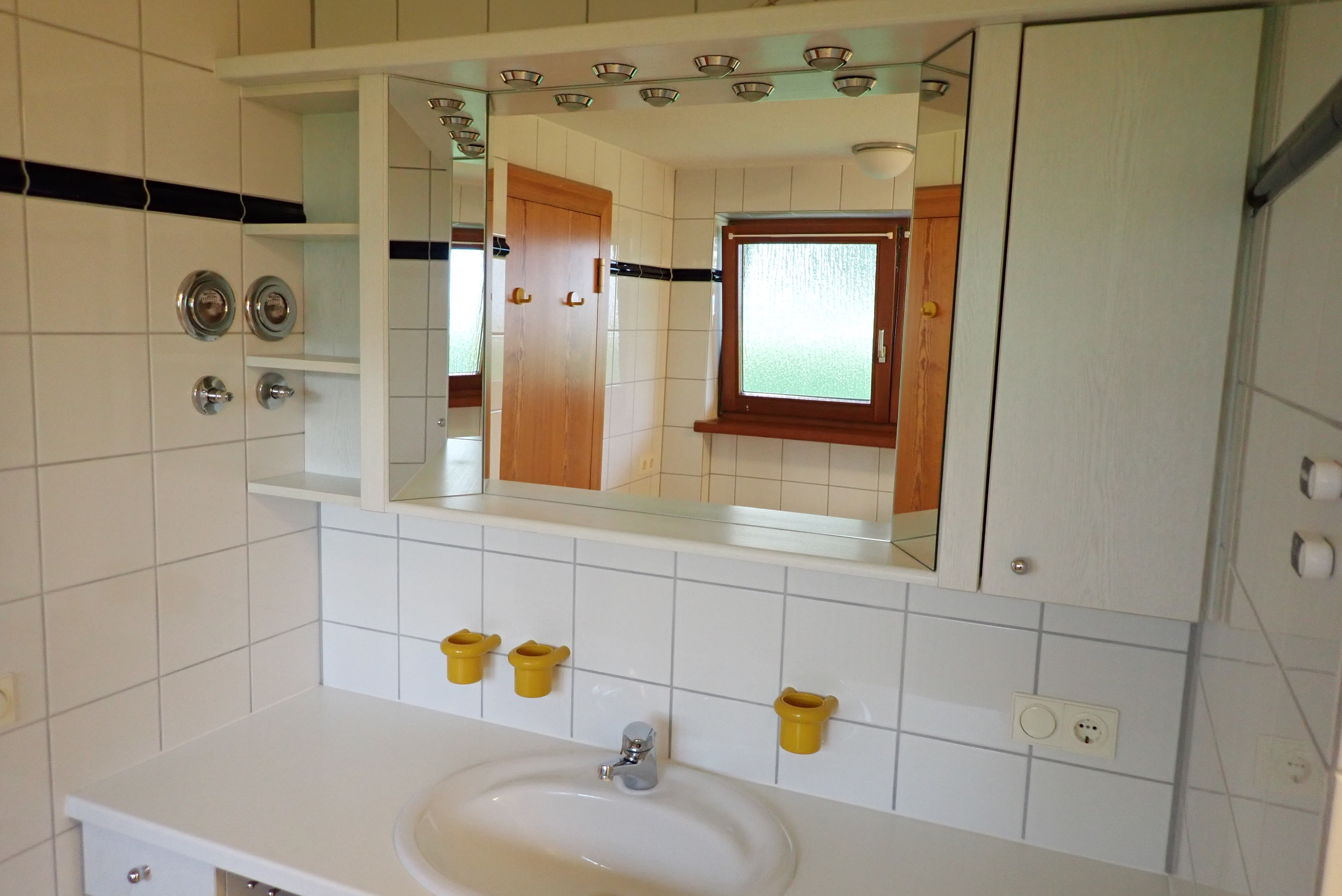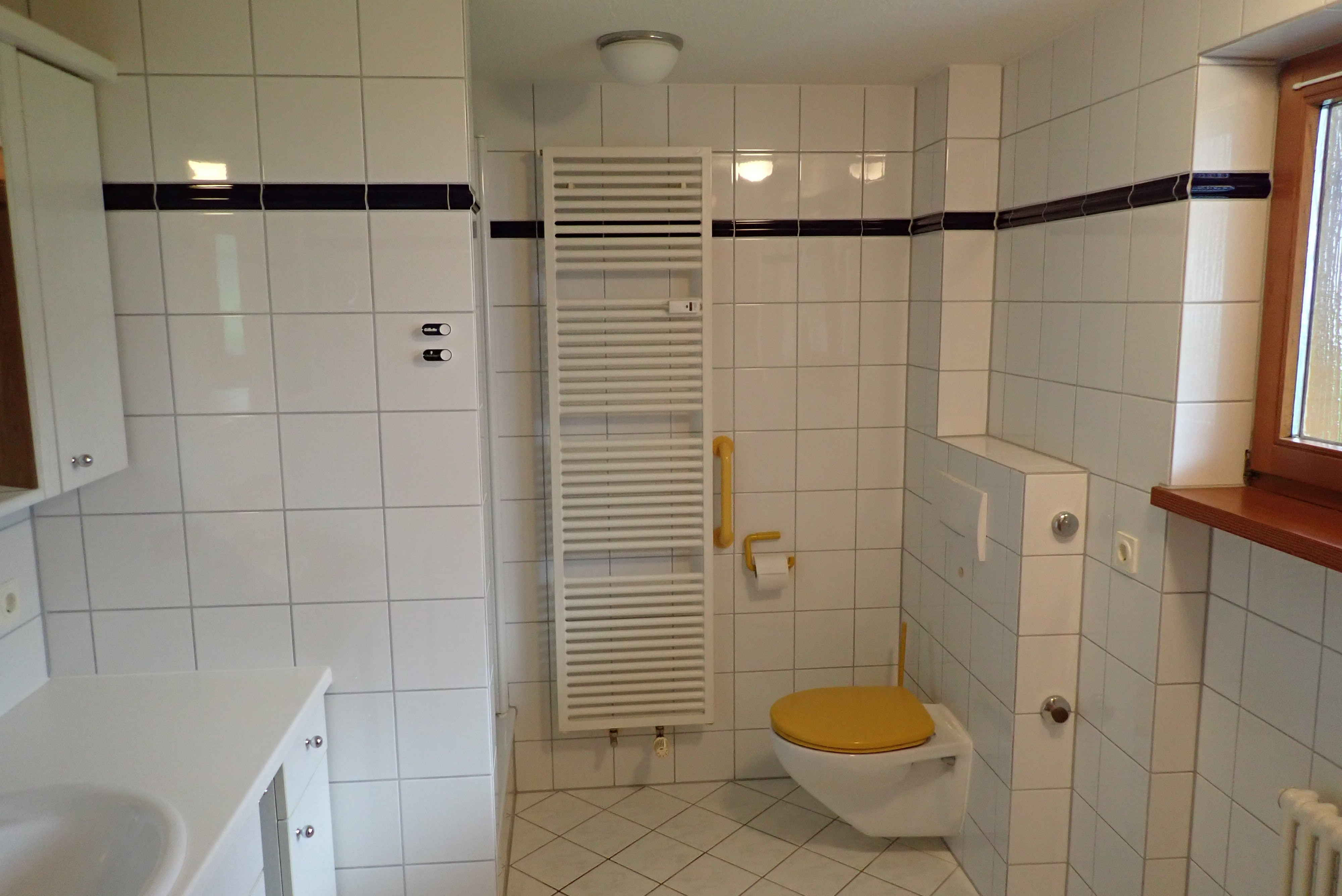 Die beiden geräumigen Bäder (eines davon mit Ostfenster) sind hochwertig ausgestattet - eines mit einer Dusche, das andere mit Badewanne und Dusche. Zusätzlich gibt es noch ein Gäste-WC und einen Abstellraum in der Diele und eine Abstellkammer auf dem Südbalkon.