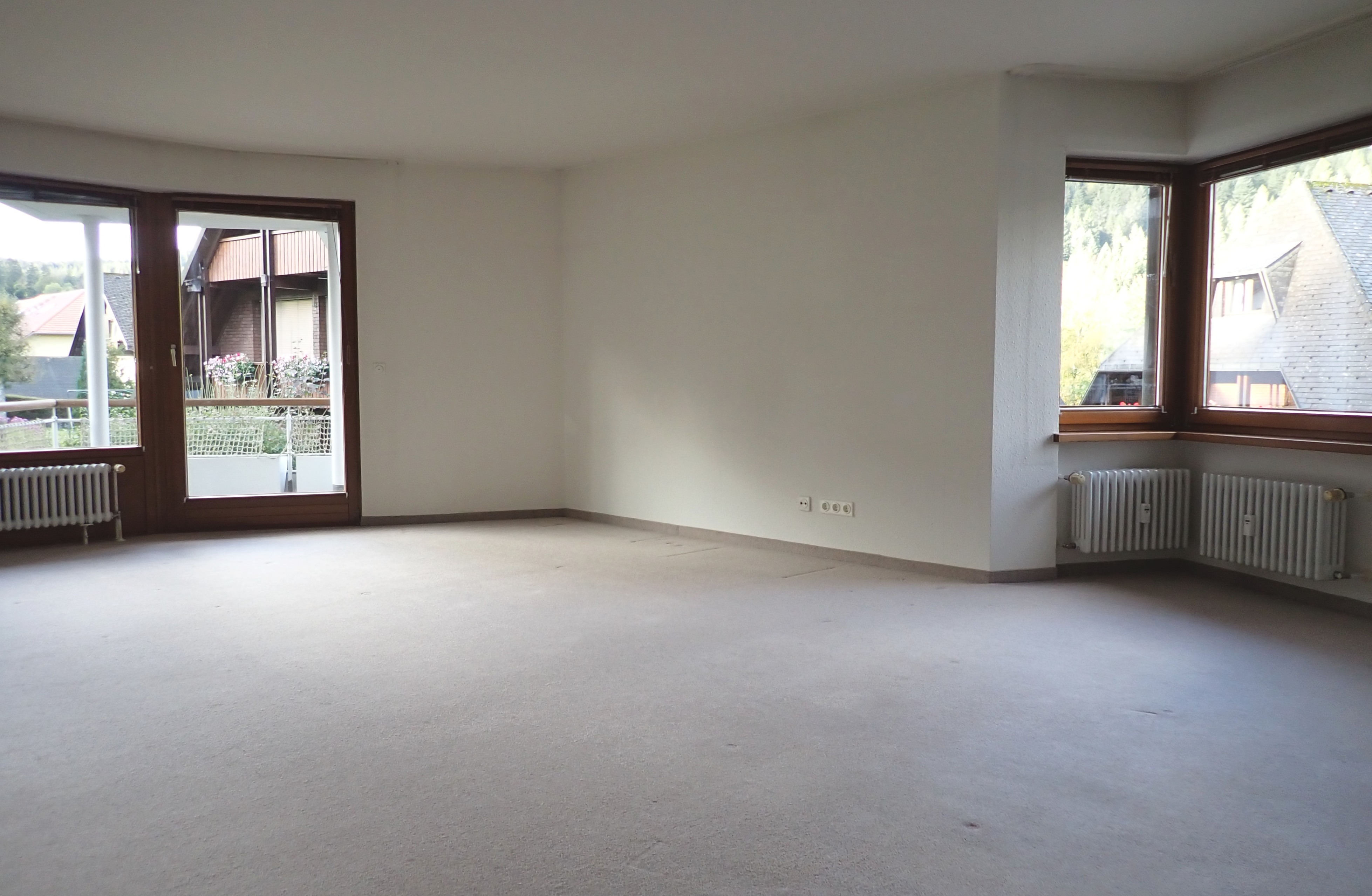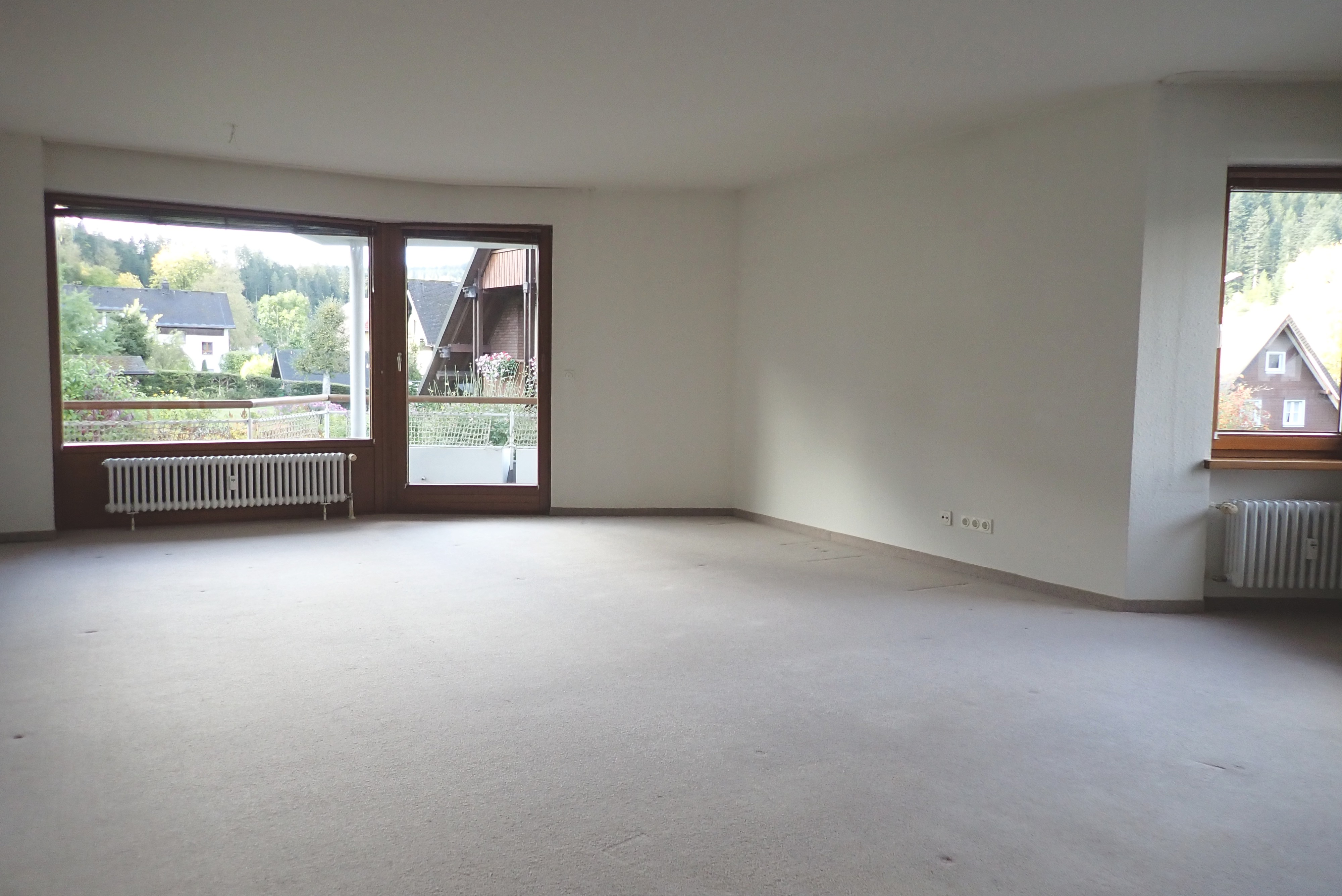 Der ca. 36 m² große Wohn– und Essbereich mit angenehm-individuellem Grundriss in Süd-Westausrichtung führt auf einen großen Südbalkon. Von allen Wohnräumen und der Küche genießt man einen weiten Blick auf die Berge um Hinterzarten. Alle Wohnräume haben Zugang zu den zwei großzügigen Balkonen. Am Morgen wird man im Schlafzimmer mit Sonne geweckt und kann vom Westbalkon des zweiten Wohnraumes sowie von der Küche aus den Sonnenuntergang genießen.