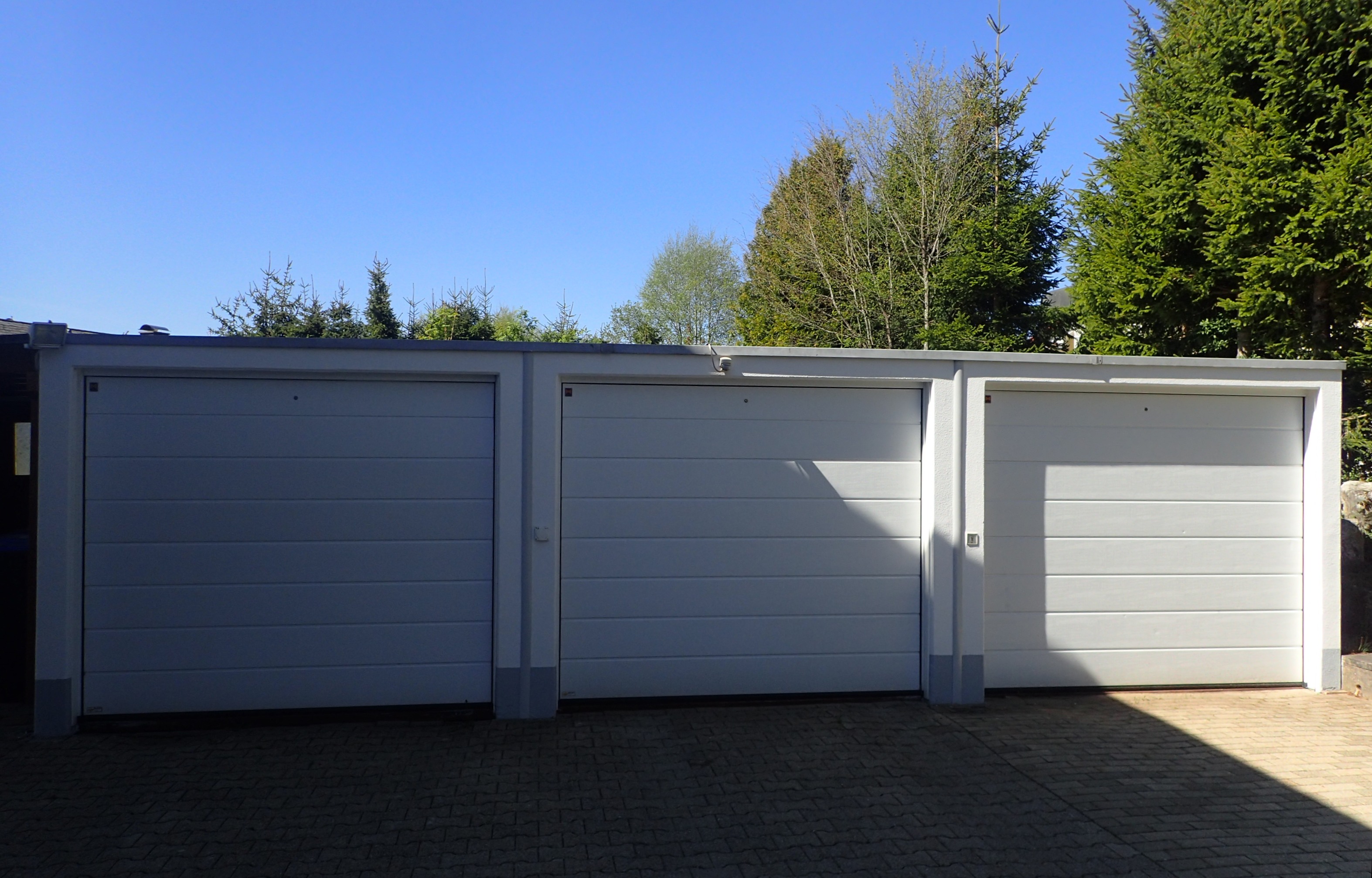 Eine Eigentums-Reihengarage mit fernbedienbarem Rolltor wird nur zusammen mit der Wohnung verkauft - sie kostet 10.000,00 €.
