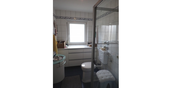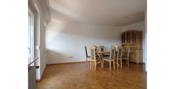Die Wohnung im Obergeschoss verfügt über ein Wohn- und Esszimmer mit einer breiten Fensterfront und Balkontür zum ca. 11 m² großen Südbalkon mit weitem Ausblick. Die Küche, das Schlafzimmer und das Duschbad haben jeweils ein Fenster nach Osten. Sämtliche Fenster in der Wohnung können mit Rollladen verdunkelt werden. Die Wohnräume und auch die Diele sind mit Stäbchen-Parkett ausgelegt. Die Einbauküche mit einer praktischen Glasschiebetür zum Wohnzimmer wird einschließlich der Elektrogeräte mit verkauft. Das Duschbad wurde 2014 modernisiert und wird mit sämtlichen Einbauten an den Käufer übergeben.